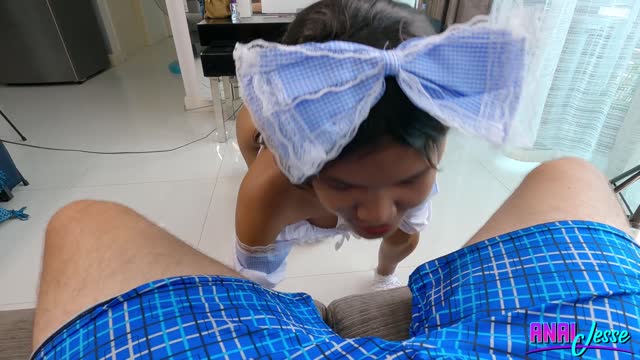 Asian Maid Cleans Cock with Ass to Mouth